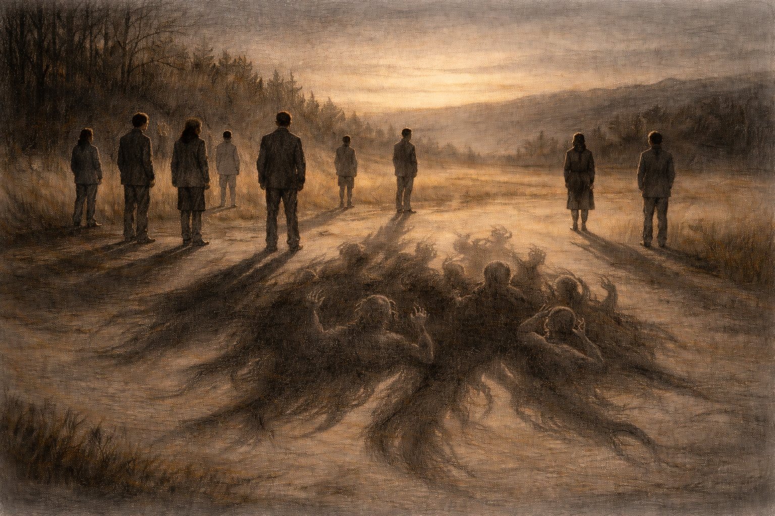 I et jungiansk sprog kunne man sige, at det går i skyggen. Ikke kun det destruktive, men også det vilde, det instinktive, det tvetydige og det levende, som ikke lod sig indordne under et pænt og kontrolleret selvbillede. Skyggen er ikke i sig selv farlig. Den bliver farlig, når den nægtes adgang til bevidstheden og derfor må leve sit liv i det skjulte — gennem tvang, idealisering, hemmeligholdelse, dobbeltliv eller projektion på “de andre”.